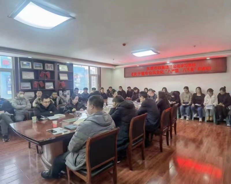太原市政集團組織黨員干部學習《省紀委關于重申會風會紀“八嚴禁、八不準”的通知》文件精神