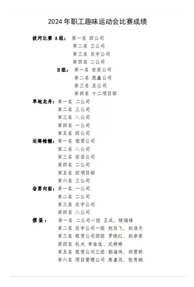 2024年職工趣味運動會比賽成績