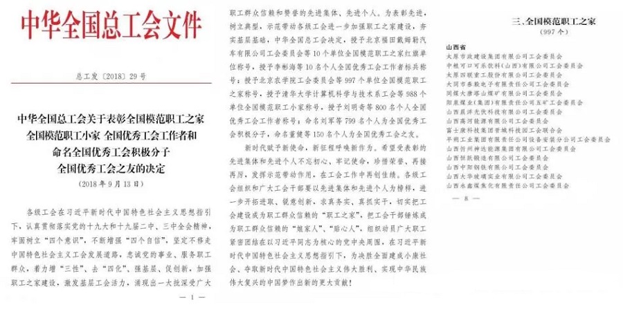太原市政建設集團有限公司工會榮獲“全國模范職工之家”光榮稱號