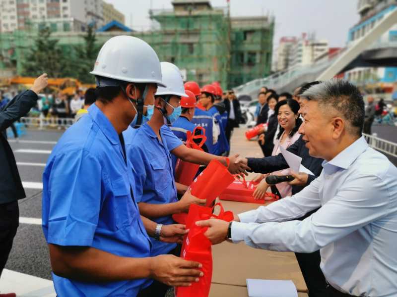 9月22日,太原市總工會、太原市人社局在集團公司承建的解放路改造工程二標段現場開展“迎中秋、慶國慶關愛農民工系列活動”。市委副書記李新春,市人大常委會副主任、市總工會主席張磊出席活動。市人社局黨組書記、局長陳曉紅,市委住建工委書記、市住建局局長邵社教,市委住建工委副書記傅立及市總工會其他領導薛之東、康衛青、汪倫、鄒江參加了活動,集團公司黨委書記、董事長郝東輝,黨委委員、監事會主席、工會主席馮忠也參加了此次活動。活動由市委住建工委副書記傅立主持。