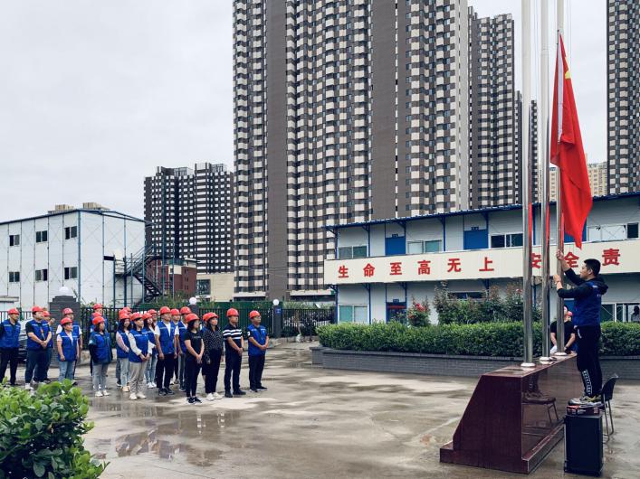 本次主題黨日活動(dòng)共分升旗儀式、主題演講、宣誓、工作匯報(bào)四個(gè)部分。在升旗儀式中,干部職工齊唱國(guó)歌,向國(guó)旗行注目禮。項(xiàng)目經(jīng)理武吉寶圍繞該工程的基本概況、施工組織、工程難點(diǎn)、施工節(jié)點(diǎn)四方面進(jìn)行了匯報(bào),并通過播放千峰路南延道路工程航拍視頻,全面直觀展示了工程基本情況。