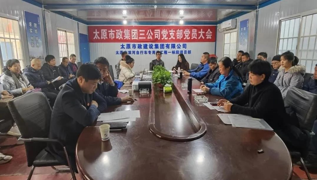 11月29日,三公司在濱河自行車專用道工程一標段項目部召開黨員大會。