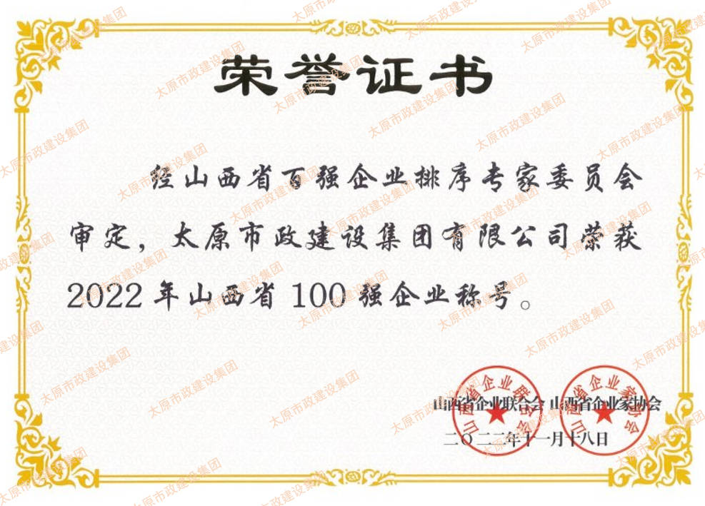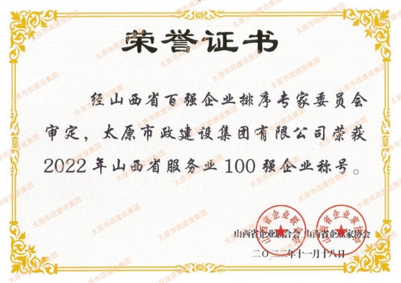 近日,集團公司榮獲山西省企業聯合會和山西省企業家協會頒發的“山西省功勛企業”和“山西省100強”(排名第45位)“山西省服務業100強”榮譽稱號。集團公司黨委副書記、副董事長、總經理溫慧武榮獲“太原市功勛企業家”榮譽稱號。
