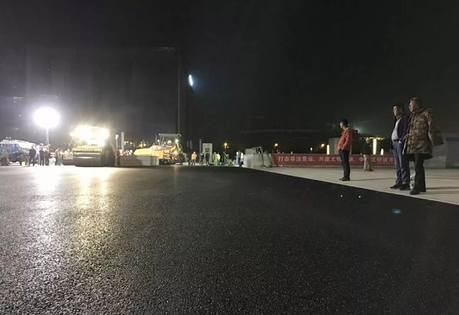 20日凌晨1點,開始鋪筑瀝青路面,施工人員、攤鋪機械通宵鏖戰,順利完成了下面層瀝青攤鋪。同時,鋪設人行道、破損部位補修等工序也一并進行著,全體參建人員始終秉持“質量第一”的意識,在細部施工上也一點不敢放松。