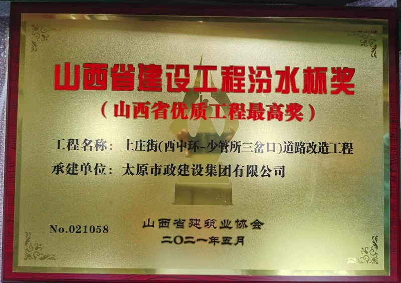 近日,集團公司承建的太茅路改造工程二標段、臥虎山快速路建設工程一標段、上莊街(西中環—少管所三岔口)道路改造三項工程喜獲山西省建筑業協會頒發的2020年度“汾水杯獎”。這一獎項是山西省建設工程質量最高獎,是我省唯一與魯班獎、國家優質工程獎、安裝之星獎等國家級工程建設獎項接軌的獎項。