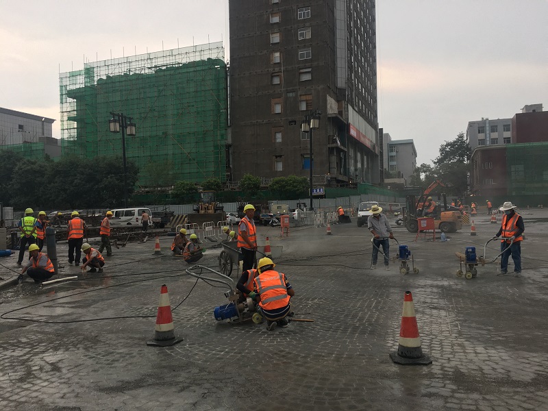 夏日的燥熱抵擋不住全體施工人員的工作熱情,為了全力推進工程建設,項目部合理延長每日施工作業時間,增加作業班數,不分晝夜進行施工作業。為了有效提高施工速度,項目部采用流水作業的施工方式,多工作面平行作業,提高機械利用率。同時,項目部針對季、月、旬作出詳細計劃,建立起進度協調工作制度,每周組織項目部管理人員及各工隊組長召開施工調度會,重點解決施工中的技術難題,以及計劃執行情況和存在的問題,隨時根據施工情況調整各施工項目的人力、機械和材料用量,全力以赴推進工程進度。截至7月20日,廣場環路、迎澤南街路面磚鋪裝已完成100%,廣場西路鋪裝已完成90%,廣場東路完成63%;并州北路及廣場南路完成35%;廣場總鋪裝面積3萬多平米,已完成總鋪裝量的50%。