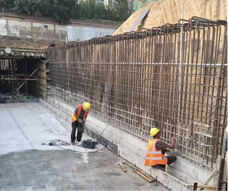 在K1+030處施工時,南北方向有一條地下人行通道,項目部需要在通道內安裝疏散指示燈、應急指示燈、熒光燈等。在施工過程中,項目部緊跟道路施工方的施工進度,當道路施工方木工支起模具時,項目部相關施工人員需要立即將鋼管預埋進鋼筋架中,這就需要項目部和道路施工方緊密配合,施工員每日緊盯施工進度,見縫插針式地完成管線預埋工序,為后續施工奠定了基礎。由于前期設計圖與施工實際情況有出入,無法確定電源箱的具體位置,現場技術負責人多次與設計院聯系,經過不斷實地勘察、測量、畫圖對照,最終確定電源箱的實際位置,并在道路上增加了多條鋼管過路,確保送電時萬無一失。