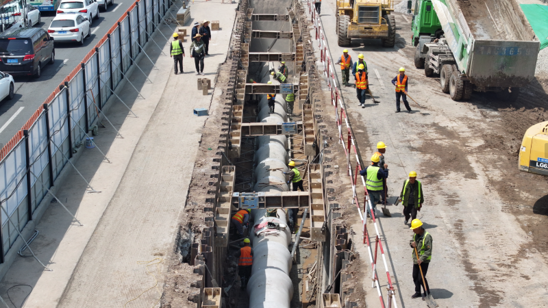 太原市政集團(tuán)堅(jiān)決扛牢使命擔(dān)當(dāng),強(qiáng)化統(tǒng)籌、多方聯(lián)動(dòng),想盡一切辦法,克服一切困難,全面對標(biāo)看齊“迎澤標(biāo)準(zhǔn)”,堅(jiān)持以全局觀念和系統(tǒng)思維謀劃推進(jìn)項(xiàng)目建設(shè),采用半幅封閉施工、平行流水作業(yè)方式,克服工程體量大、施工內(nèi)容繁重、建設(shè)工期緊張等困難與挑戰(zhàn),一體推進(jìn)道路、管線、照明、沿線景觀等建設(shè)任務(wù)。項(xiàng)目伊始,規(guī)劃“導(dǎo)航圖”,研討節(jié)點(diǎn)安排、工序銜接、資源配置等關(guān)鍵環(huán)節(jié),制定十余套專項(xiàng)施工方案,優(yōu)化組織設(shè)計(jì),形成管理閉環(huán);繪制“進(jìn)度表”,建立分級負(fù)責(zé)、動(dòng)態(tài)調(diào)整的進(jìn)度管控體系,提升9個(gè)工區(qū)自主管理效能,錨定工期目標(biāo),加快施工效率。施工過程中,掃清“攔路虎”,采用鋼板樁支護(hù)、分層開挖、放坡開挖工藝,克服地下管線復(fù)雜、開挖深度大、地下水高等難點(diǎn),確保管網(wǎng)升級與地鐵運(yùn)營和諧并行;保持“攻堅(jiān)態(tài)勢”,針對重難點(diǎn)部位,提前制定專項(xiàng)方案,全部進(jìn)行技術(shù)交底,著重加強(qiáng)安全、質(zhì)量管控,形成高效施工態(tài)勢。注重以人為本,提升“施工溫度”,細(xì)化各項(xiàng)便民、利民措施,最大限度降低對市民日常生活的影響,保障通行需求;擦亮“市政名片”,開展道路清理志愿服務(wù)活動(dòng),用實(shí)際行動(dòng)為城市“美容”,展現(xiàn)國企擔(dān)當(dāng)。