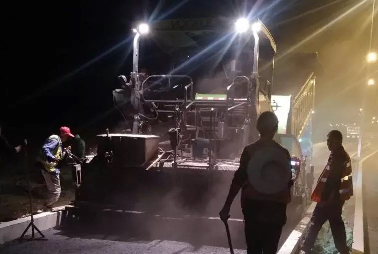 租賃公司設備維修組人員如同 “永動機”,以攤鋪節點為指令,不分晝夜、隨時待命。截止目前,共完成攤鋪機拆裝達 100 余次,最多時一天拆裝 6 臺次。維修人員常常踏著月光奔赴現場進行攤鋪機拆裝,伴著朝霞匆匆趕回單位進行其他設備的搶修作業,正是有了他們這些時刻保障攤鋪的幕后 “藍盾”,才確保了施工的順利進行。同時,租賃公司嚴把 “兩關”,把好機械調配關,根據施工作業面、工程量要求,進行機械設備數量配置;把好機械檢修關,安全技術科人員加大對機械巡檢頻次,消除安全隱患。