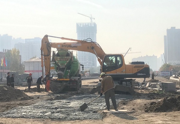 太原市政建設集團有限公司中心街西站道路恢復工程正在進行道路、排水工程