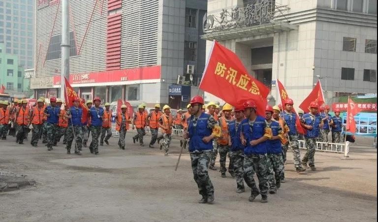 此次防汛應急演練設有快速集結、險區警戒、積水排放、井下清淘、筑壩搶險五個科目。在快速集結科目中,現場的82名搶險隊員攜帶搶險設備和物資,迅速奔向險情地點。在險區警戒科目中,后勤保障組對險情地點進行現場警戒及交通疏導,在通往事故現場的主干道上實行交通管制,保障現場各個通道暢通無阻。積水排放科目開始后,搶險隊員攜帶抽水設備迅速趕到施工現場,開始抽水工作,確保積水已下降至正常位置。井下清掏科目中,搶險隊員將井內的雜物清理干凈。最后一個科目是筑壩搶險,搶險隊員在現場配合默契,分工明確,順利完成此項科目。