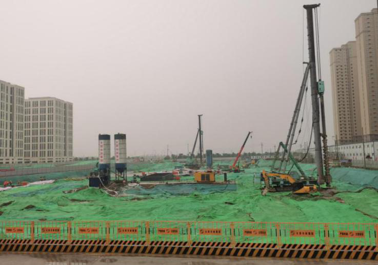 一公司承建的千峰路南延建設工程雨水泵站及調蓄池施工工程位于千峰南路南中環街交叉口西南角地塊,是2020年太原市重點市政工程項目,也是集團公司繼水西關街泵站、康樂街雨水泵站之后承建的施工難度最大的工程項目。該雨水泵站主體包括調蓄池和泵站兩部分,為全地下結構。施工中,項目部積極改進技術、提升效率,推動工程順利進展。針對泵站基坑屬于危險性較大的分部分項工程,項目部主要采取地下連續墻加預應力錨索體系和地下連續墻加鋼筋混凝土、預應力鋼管內支撐體系兩種方式進行基坑支護。地下連續墻加預應力錨索體系是在基坑內布置474根鋼筋混凝土灌注樁、77口網眼鋼管降水井、42口觀測井,120幅地下連續墻,分設三到四層共756道預應力錨索,腰梁采取暗梁設置,陽角處設內角撐梁以保證支護效果。地下連續墻加鋼筋混凝土、預應力鋼管內支撐體系是由于在陽角處受群錨影響,采取地連墻預應力錨索效果較差,因此在共六幅地連墻處采用分為上層鋼筋混凝土支撐、中下層預應力鋼管支撐的內支撐方式,再加一道預應力鋼管換撐。同時,該工程采用BIM技術,通過提前的模擬建造工程規劃場地布置、精確建立模型,檢查管線、梁、柱的三維空間位置等手段輔助施工。
