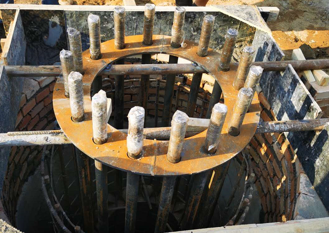 十三項目部承建的桃園四巷片區道路改造工程地處老城區,地下水位高,基礎埋深較深,土質為淤泥質軟土,且道路兩側分布高壓電桿。施工中,項目部不斷創新施工工藝,改進施工技術,為工程的順利完工奠定了堅實的基礎。為配合市政府進行無纜化社區改造施工,需在新建路桃園四巷路口打設一處電纜鋼桿基礎,該鋼桿基礎為直徑1.8米,埋深5.7米的鋼筋混凝土結構。由于緊鄰高壓電桿,無法采用常見的基坑施工方法,經過技術人員討論分析,項目部決定采用沉管工藝進行施工。施工中,需在基礎位置挖設外徑2.5米、深度1米的基坑內垂直放置內徑1.5米,長度2.5米的企口混凝土管,項目部采用機械配合人工挖土的方式進行管道下沉施工。為加快施工進度,施工人員采用三班交替24小時不間斷施工的方法,經過3天4夜的日夜奮戰,順利將2根2.5米長的預制混凝土管沉入指定深度。隨后,通過安插片石穩定管基,澆筑混凝土進行沉管封底,待基坑底部混凝土達到規定強度后,按設計高程吊裝并固定鋼筋籠,最終圓滿完成了鋼桿基礎的施工任務,為工程質量和施工安全提供了有效保障。