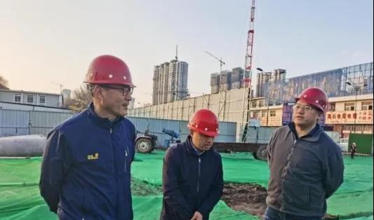 11月19日,市委住建工委書記、市住建局局長邵社教在太原市建管中心主任范永剛的陪同下赴千峰路南延建設工程現場檢查指導工作。二公司經理岳志強陪同檢查。