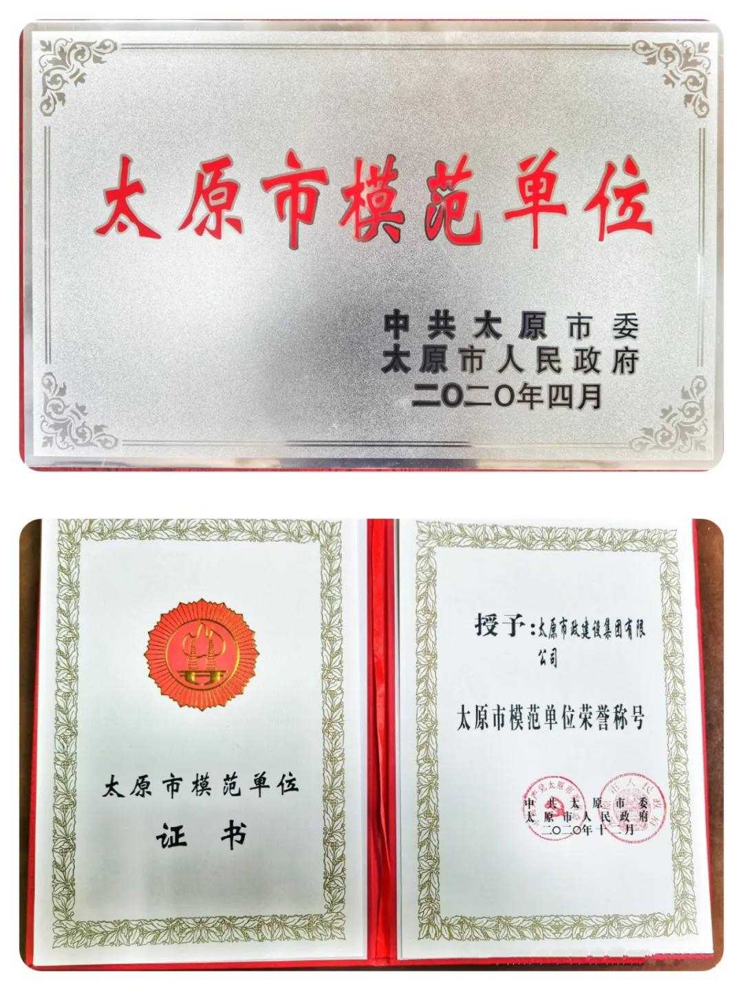 集團公司被市委、市政府授予“太原市模范單位”榮譽稱號;聚興勞務公司王留金榮獲太原市“特級勞動模范”榮譽稱號;一公司張棟超榮獲太原市“勞動模范”榮譽稱號;二公司王天榮、郝紅勝被命名為“晉陽工匠”榮譽稱號;一公司汾東污水處理廠及配套管網一期二步工程項目部、二公司火車南站西廣場導改工程項目部和聚興勞務公司孫瑞臣勞務隊被授予太原市“工人先鋒號”榮譽稱號。