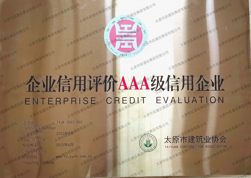 太原市建筑業協會-企業信用評價AAA級信用企業