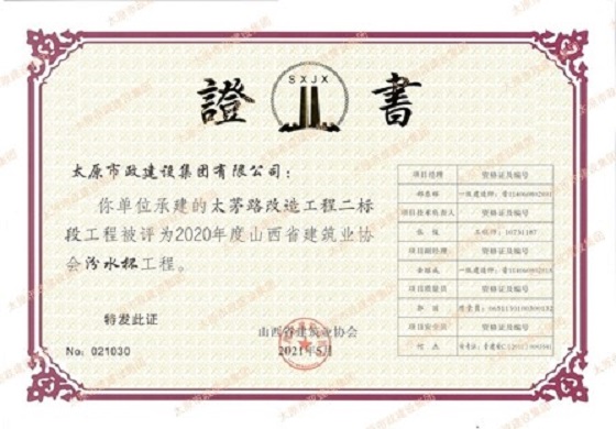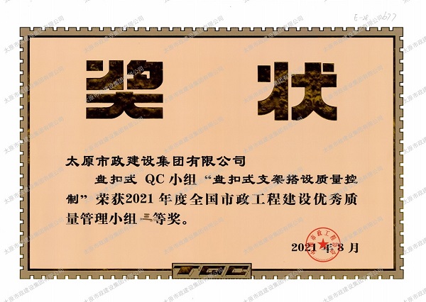 2021年度全國市政工程建設優秀質量管理小組三等獎