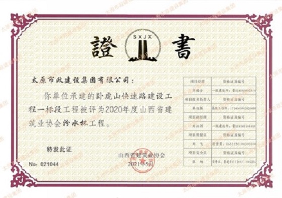 2020年度汾水杯 臥虎山快速路建設工程一標段